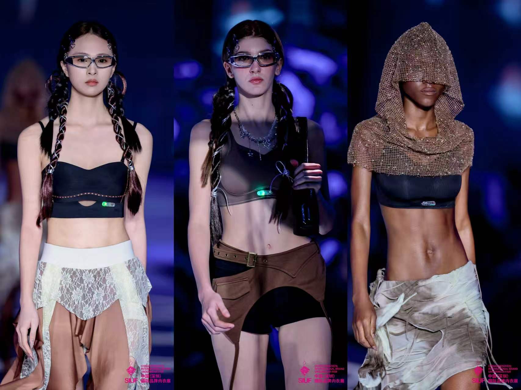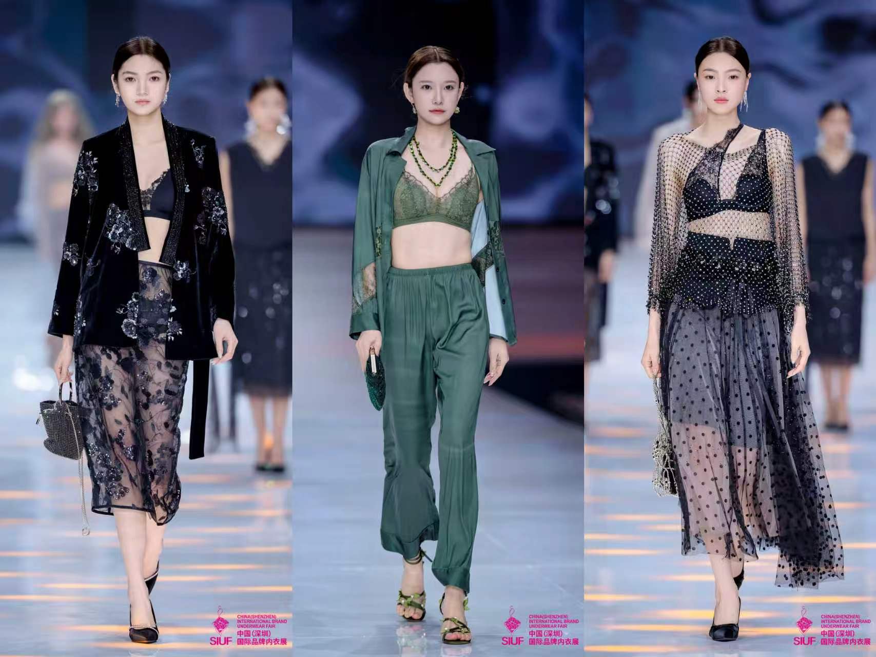 大秀分为三个篇章,层层递进:「显·东方」篇以非遗、肚兜、宋锦与绣花为线索,将东方美学的细腻娓娓道来;「融·西韵」篇用真丝与蕾丝的对话,完成东西方审美的柔和交织;「生未来」篇则发布了古今颠覆性新品概念——智能穿戴文胸,展现了老字号在科技与时尚融合上的前瞻探索。